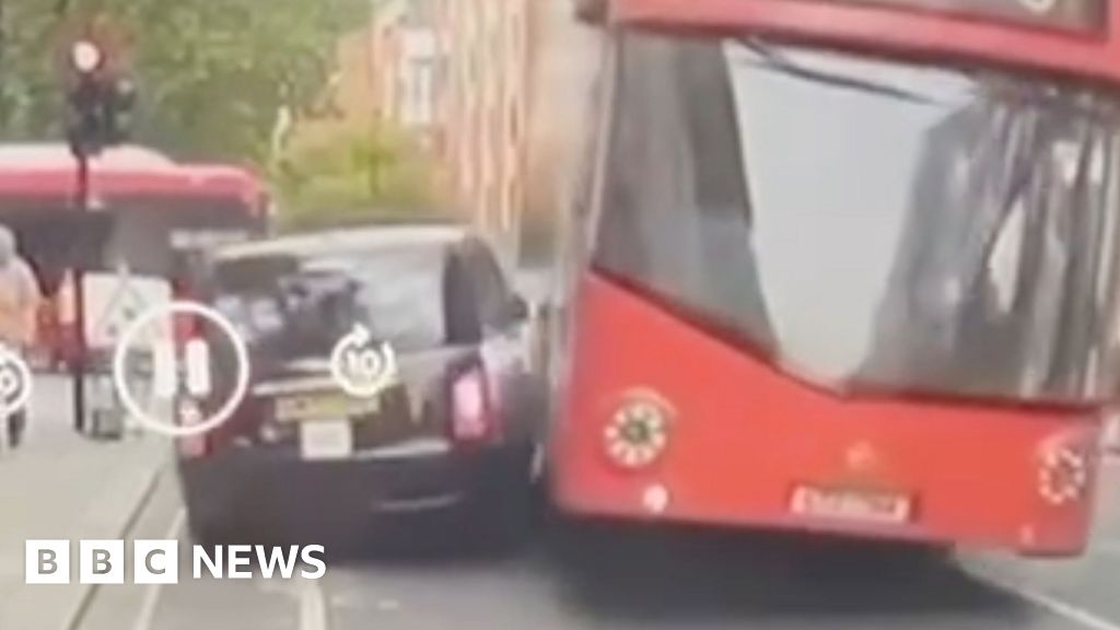 The video, sent to the BBC, appears to show a Number 3 double decker bus turning right into a road near Westminster and immediately hitting a black taxi waiting at the junction.